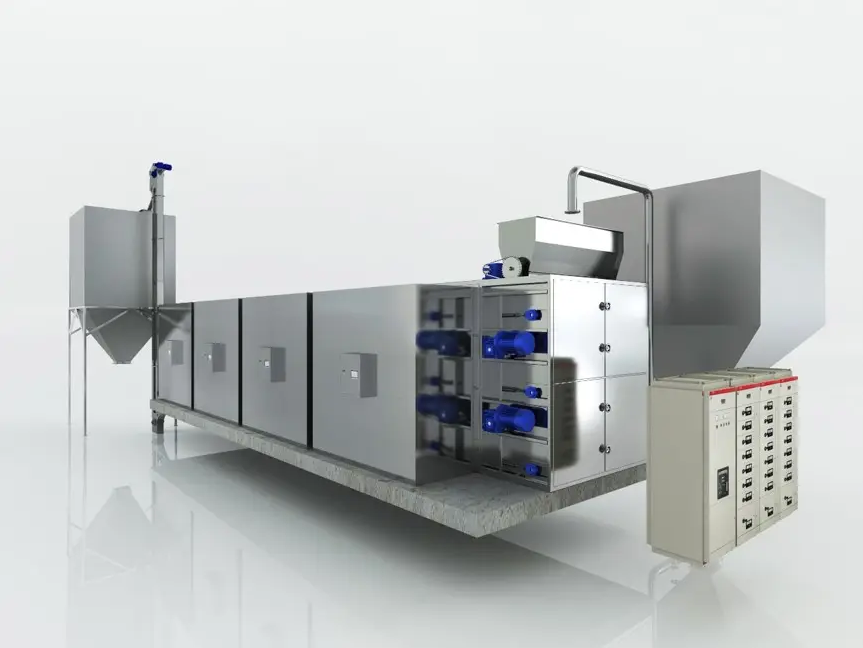 污泥干化處理設備的工作原理是對原生污泥濃縮后進行改進,接著泵入容壓彈性壓榨系統(tǒng)進行深度脫水處理,促使污泥含水率降到60%以下,最終實現(xiàn)污泥低費用、資源化利用的目標。